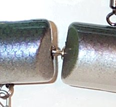 Put your wire through rhw plug, measure 3/8" from body and mark with a sharpie, cut the tag end so that is it is the same length as the tag end in the preformed loop.... the mark will be the center of the loop, I like to preform the loop first then squeeze it shut, but ONLY ENOUGH TO PASS IT THROUGH THE SWIVEL,the wire must be of an anealed nature ot it will break when you try to open it back up. now insert the wire into the plug, the double wire goes through a #1 swivel with no problem, I also like to use a small washer at the joint ( again see the plug I made) now go to a block of wood, using an awl, push it into the wire to spread the joint, I then place it onto a block of wood and hit =the awl with a hammer to start the process, I then move it to another section on the block that I have drilled out(3/16") and drive the awl in as far as needed to form a neat loop... by using an awl, the taper make the process eaiser and alows tyou to make the lopp as large as small as you want... I'm actualy working on several jointed plugs now, I'll take soem photos tonight and post the process of how I do it... |