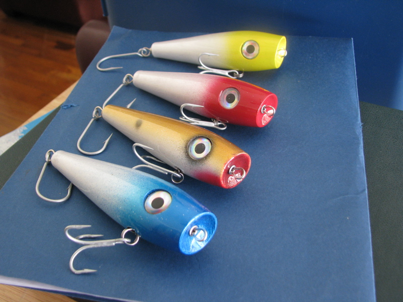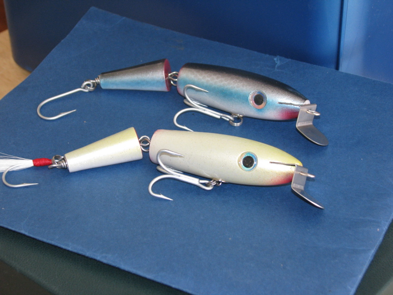 Don't remember if I listed the white swimmers, but they swim so good they deserve to be shown again. The other poppers and jointed swimmers are relatively hot off the press.