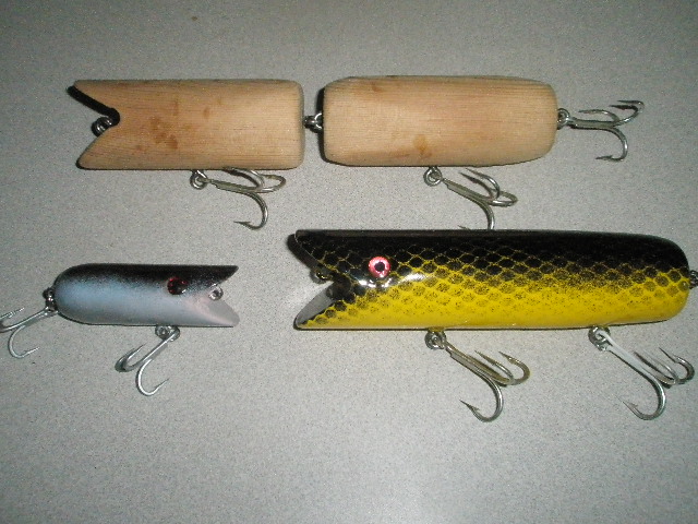Still playing with the metal-less swimmers. Never really been good at following directions, I like to just see what does what. The eely looking one swims really nice, really slow. It will only have a specific time frame to fish. The little swimmer is for my neighbor who is a largemouth fanatic. The big jointed is work in progress and will have a different ass after I tested it today.