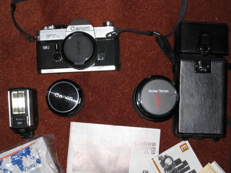 Canon FTb slr, Vivitar, Canon 50mm 1.8 lens, 28mm wide angle, Vivitar Series One 70-210 Macro Zoom... all in excellent condition, includes two batteries and a smal Vivitar flash. Sell for $125 or possibly trade. For someone who is taking a film photo class and needs a great quality manually operated camera this is a great outfit. I just don't use it as I have other Canons. Anyway... I can post photos if anyone is interested.