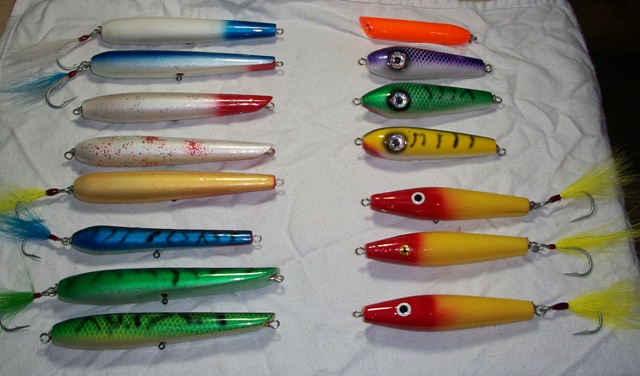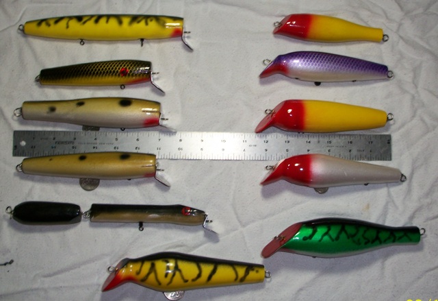Here is a new batch I just finished for the fall run topwaters and swimmers. I ran out of lips so i decided to try some nike plugs. I also have some bottles that need epoxy I will post those when I finish them.