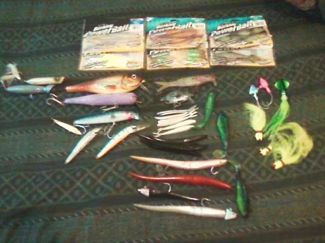 First is a -St.Croix Ben Doerr 10' surf system up to 3oz. 40/60 split. there are about 5 scratches on the rod, the cork tape is in great shape as is the reel seat. looking to get 150 +shipping. Next is a 6'6 Ande jigging rod. rated 3/4-4oz. the top grip is x wrap like the mojo surf and the bottom is EVA grip. the rod is in great shape. great for the yak or boat. looking to get 45 +shipping Next is a WaveSpin 5000dh full with 50lb power pro in 7/10 condition cosmetically. but 9/10 mechanically. looking to get 70 +shipping Starter Lures: 2 poppers,5 divers, 1 danny, 3 9"sluggos,5 black 7 inch sluggos, 7 FinS fish,5 shad like lures, 4 bucktails (1.5oz), 1 jig, 2 jig heads, 6 packs of power bait saltwater. 30 shipped |