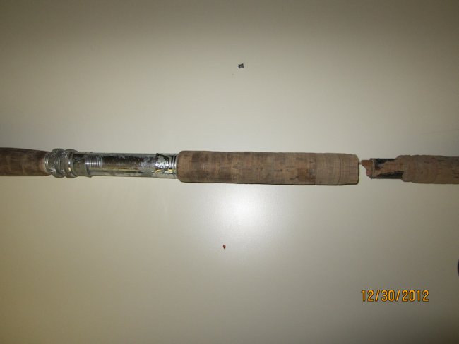 she snapped right at the top of the rod holder. I'm guessing the blank (all blanks?) need reinforcement at that point. If the drill out doesn't look promising I may see what I can do with a sleeve over with maybe a twine wrap on top. winter work in progress,,, thanks, Gup |