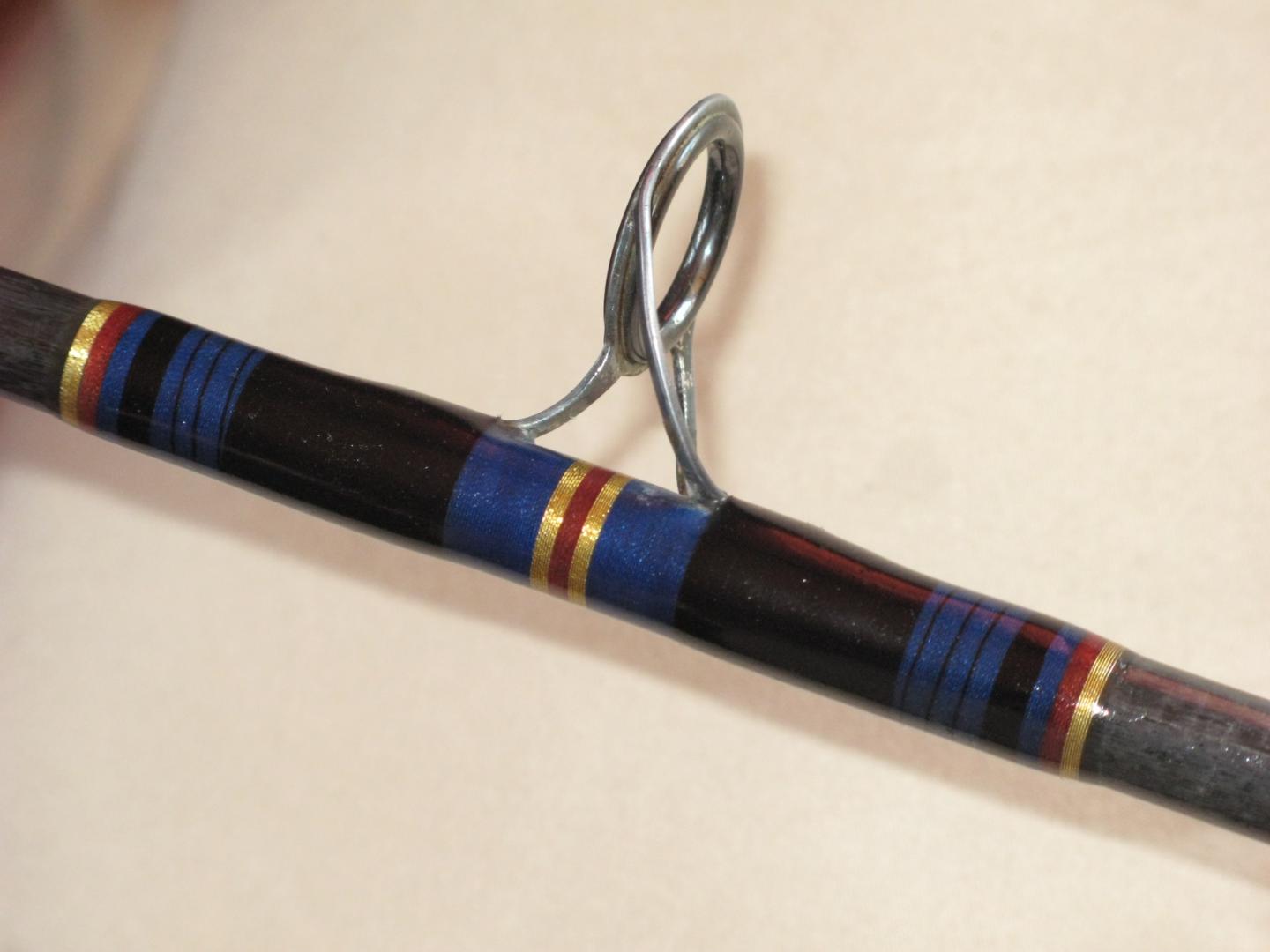 10'4", built on a 10' blank rated 2-6, 10 Fuji guides and Fuji trigger seat. Extended and wrapped at M&D's. In very good condition. $175 picked up in Southern RI.