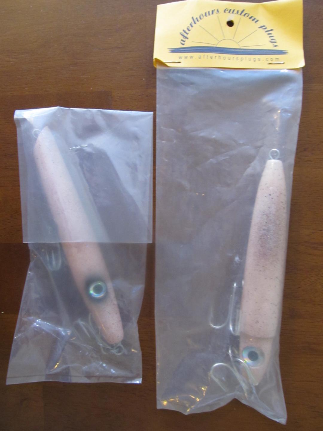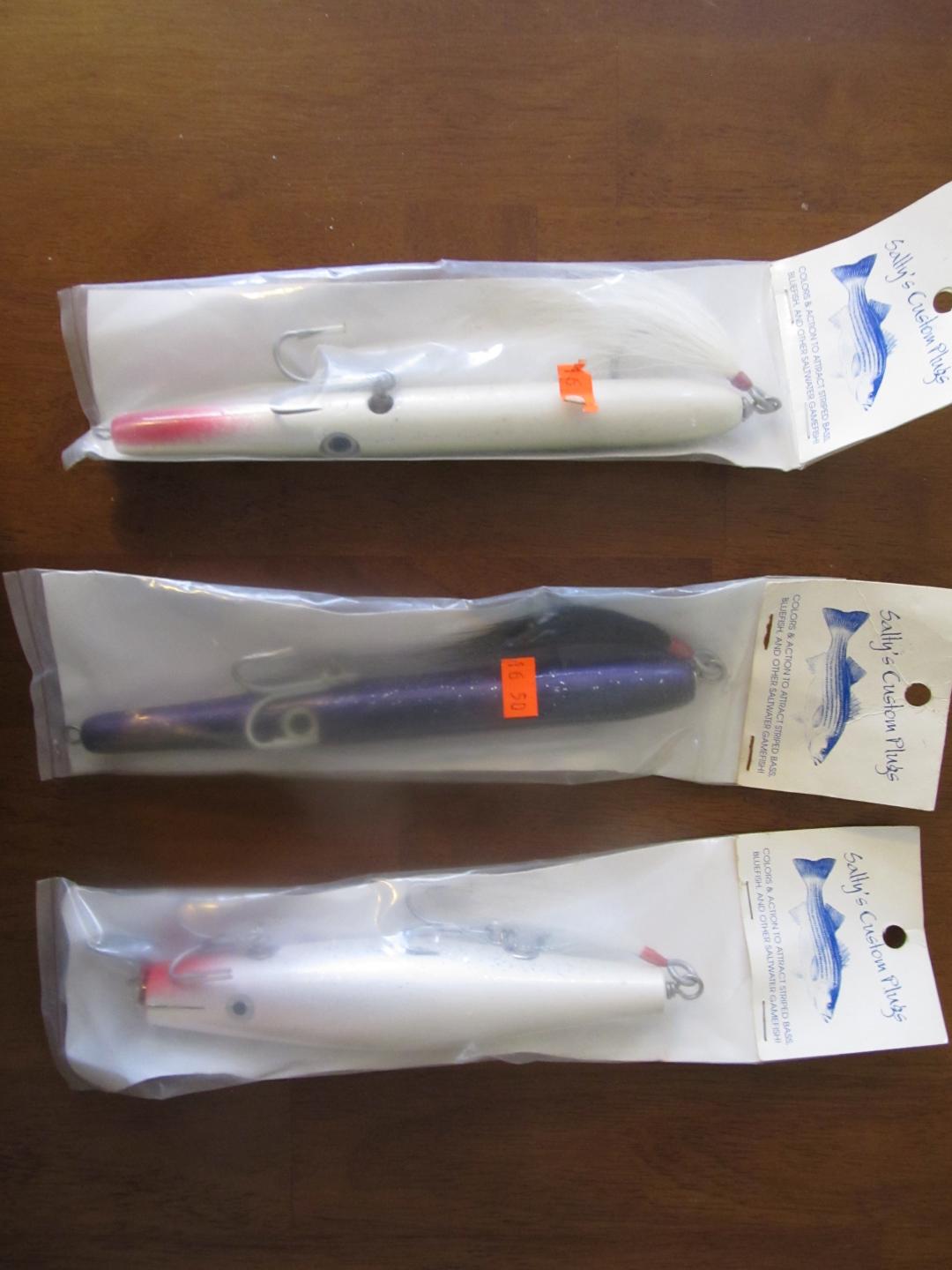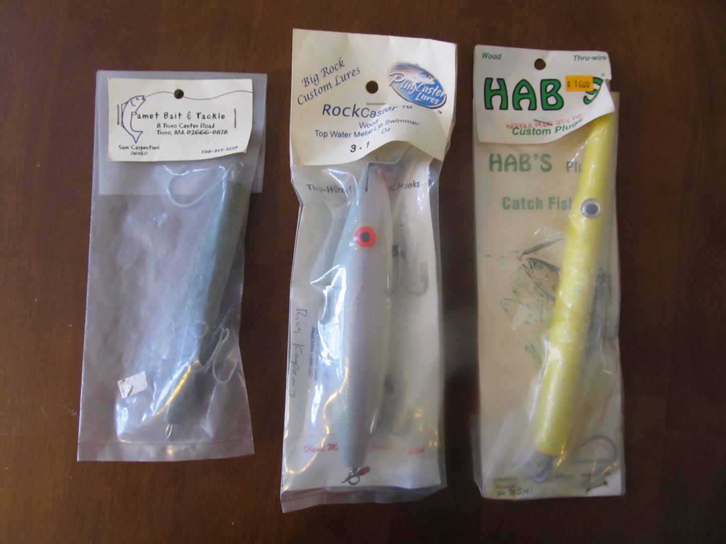 Lot 1: 5 Beachmaster dannys (6") 3 eel, 1 pearl, 1 blue/white 2 Beachmaster cowboys 1 yellow/white 1 blue/pink/white Bought from CMS years ago and never fished. $225 for set. Will meet at Gillette Stadium or Canal when time allows. Cash only. Attachment 67821 Lot 2: 8 Habs 1 1/2 oz. needles. Various colors. 2 have been fished but the finish is very good throughout. Some rusting on back hooks due to the fact they they've been sitting in my closet for 20 years. The filled in hole on 6 of them are beginning to pop out. See pic. They would need to be resealed/painted. That's why I'm letting the set go for $125. Attachment 67822 Attachment 67823 Lot 3: 3 Collectible plugs in packaging. 1 yellow Habs 3 1/2 oz. needle. 1 3 oz. RockCaster danny (very rare). 1 green needlefish from the old Pamet Bait and Tackle (not a good plug but I'm guessing its got to be pretty rare). $170. Attachment 67824 Lot 4: 2 Al Gag needles 2 Salty's needles 1 BM needle 1 SS needle 1 Saltys danny $80 Attachment 67825 Attachment 67826 Lot 5: 1 After-hours 3 oz. AH squid. 1 AH squid pencil $50 Attachment 67827 I'm not so keen on splitting sets but if you're close (Foxboro) I'd consider any reasonable offer. Cash only. Thank you. |