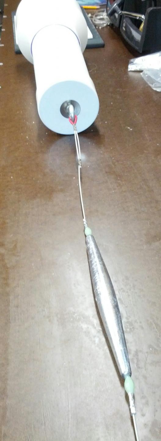 The business end pulling using 7 strand 720lb test cable. Inline 24oz sinker.