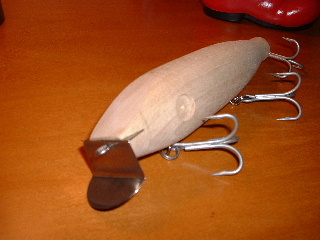 2 belly weights... thought it looked good, looking at a real one, I though I had the bellyweights right.....bent the lip in a vice... and it swam like crap  it swan just under the surface,I'm sure it will catch fish but I didn't like its swim it was disapointing
