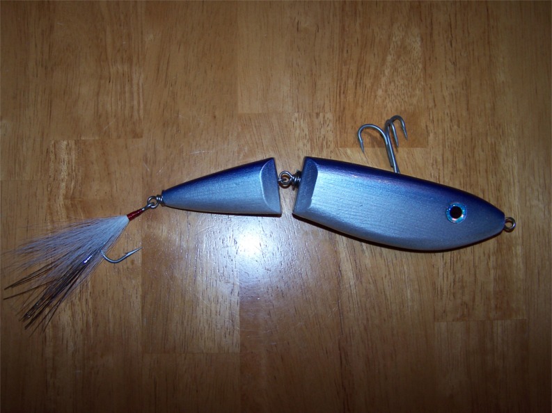 idea. We do something similar for freshwater. Straight rather than jointed, add a prop to the tail. Weigh them so they'll sit with the nose barely out of the water. Twitch, pause, twitch, BOOM  For the freshwater ones, they work best floating down a river or other moving water or thrown tight to structure. Be interested to hear how they work in the surf.