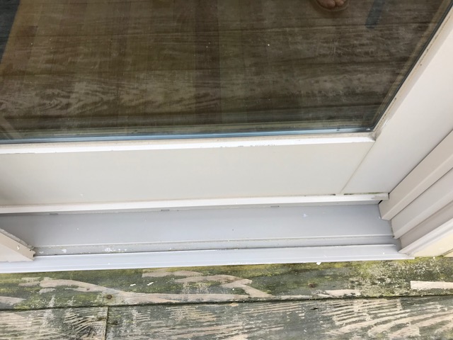 Either side of a Frenchwood inswing padio door by Anderson (2001) are these two full height glass panels and last year the weather stripping at the bottom had pulled away from the glass and we didn't know about it until the water had run down and stained the ceilings on the two floors below. I pealed the weather stripping and filled maybe a 2/16" gap that had formed as the wood too had moved away from the glass. I probably shouldn't have used caulking, but it was fine for a year or so and it too pulled away. I've got a temp shield over it until I can put a lamp on it to dry it out good and picked up some DAP 33 window glazing. Otherwise I'm sure it's a big number to get a replacement installed.
