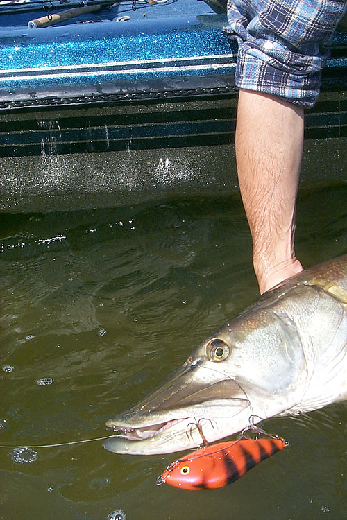 Secondly, if you send me some pictures with one of my plugs in the mouth of one of those beasts, i will happily send you a couple of my poppers, or metal lip swimers