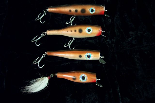 On the third picture, #2 and #4 (can't see hook as well on #4) you need to move those belly hooks further forward. You'll get better action that way. That shape is my favorite swimmer, and with the belly hooks in the position I have them it's a pisser swimming plug.