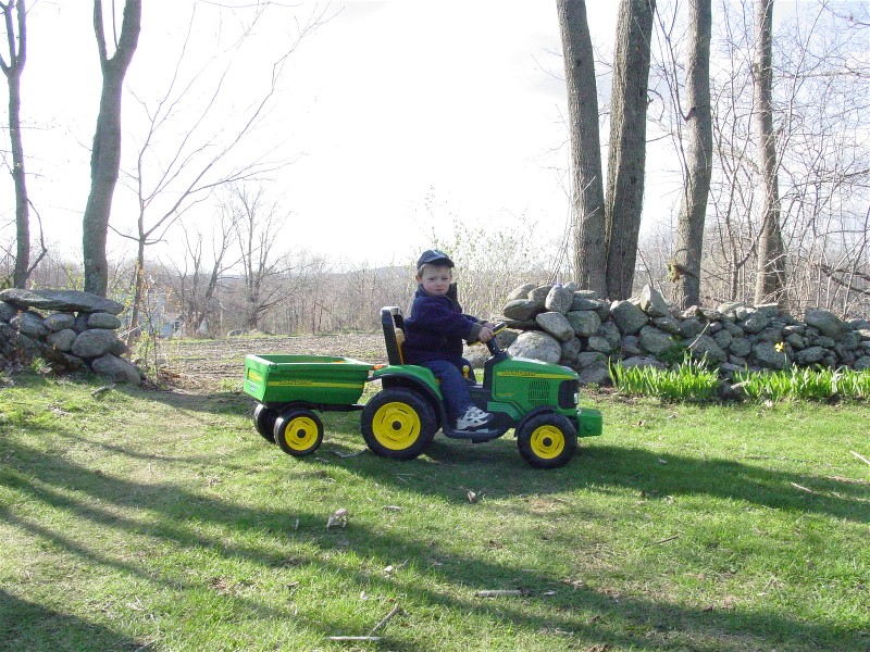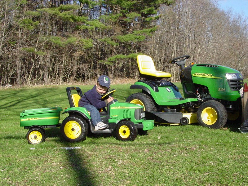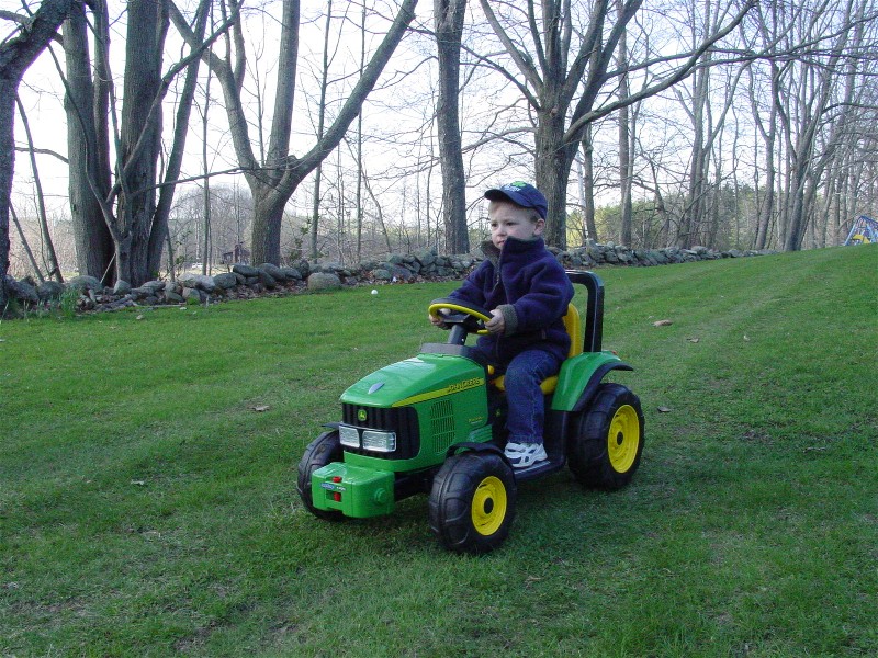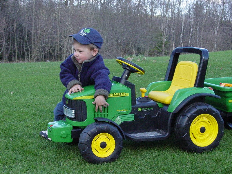 Look like the lil guy like's to cruise.He'll never forget that John Deer toy!