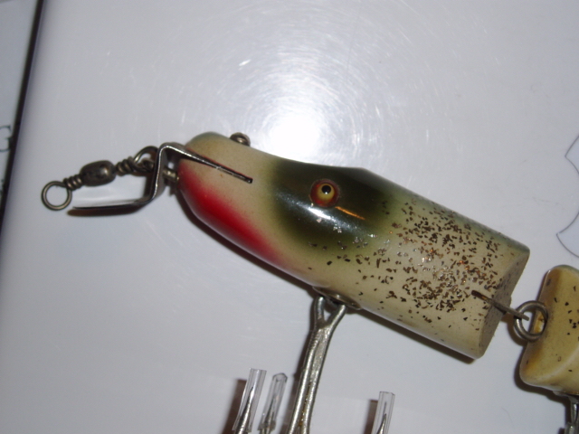 Here are some close ups but these aren't my creations , these are vintage Creek Chub lures from my collection . I WISH I created these lures and someday I hope to duplicate them , but an original Creek Chub lure had up to 14 coats of finish on them and thats why they still look great to this day .