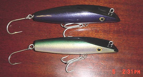 Bottom: Weakfish darter, 5.5 inches, 2.6 ounces.