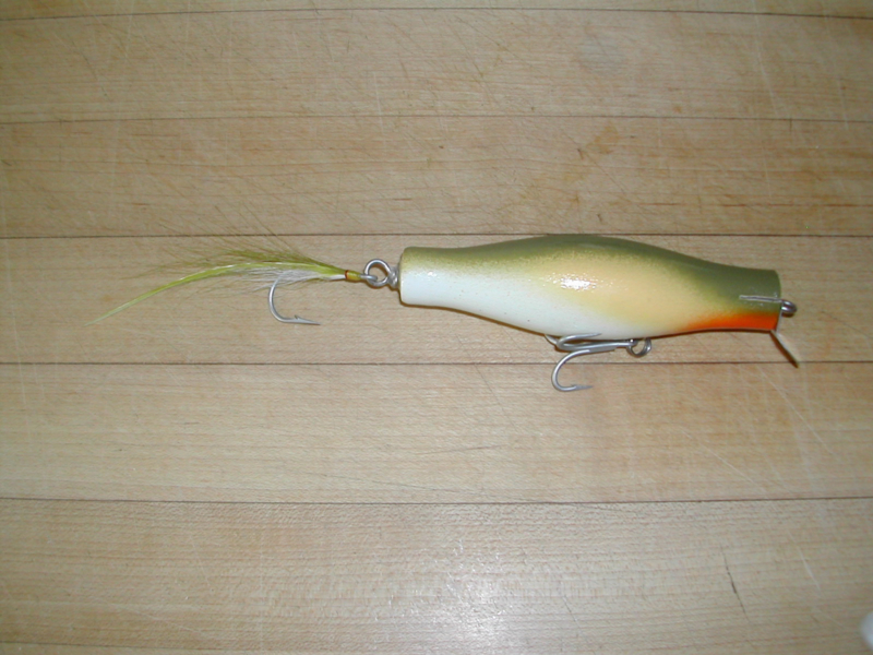 Following up on the no eyes discussion thread... Did this Danny without eyes... Also wondering if the narrow head/fat center will create less roll and a bit more wiggle. The body is 4 1/2" long. with the flatwing tail, 9" overall. I got one 00 shot dewad center in the belly. weighs in at 1.5 ounces.