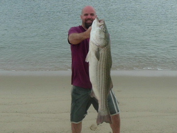 A mid-June evening.....temps a sultry 85 degrees with a gentle breeze blowing.....its midnight, half tide on the rise. I am fishing a favorite Cape beach with my best buddies (they know who they are) we are spread just far enough apart that we can still see each others silhouette under the quarter moon and the light cloudcover dims what little light that gives. The surf rolls in gentle.....you can hear the eels slapping the water as they drop......all is quiet for the first dozen casts until I see one of the guys haul back and set the hook.....I can hear the drag scream.....as I slowly crank in my eel I can feel a bump.....I stop the retrieve for a moment and sure enough, the line begins peeling from my reel. I count 3 and tighten up.....I got her on and she is big. My buddies are all landing nice fish.....25.....30 pounds.....I gain some line after the first run, not much and she is off again with a 60 yard take......I get her stopped turn her around and slowly bring her into the wash....20 feet out I see her tail thrash the water.....the tail looks huge.....the rod is almost doubled over as I keep it coming in......I let the gentle surf help me slide her up the beach and all I can think is get your hands into her gills and get her out of the wash before she throws the hook. I slide my hand under the gill plate and struggle to get the fish above the high water mark. By far the biggest striper I have caught....."looks like its at least 50" one of my buddies says as he comes over to help......the belly is like a football and the fish measures 54 inches......"man, that is a cow" one of my other buddies says.