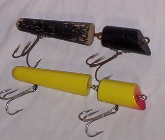 Jerry Sylvester's Jointed Plug.. 7" long weighs ,, 2.2 ounces ,,humungus 5/0 hooks,, I like that ... Feels to heavy to be top water I think its going to run deep .. I made the yellow one out of hard maple .. plan on trying birch and ayc next .. Black one is real ... Thanks VB..