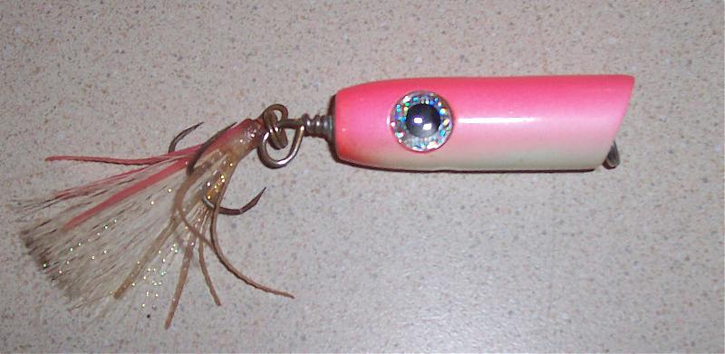 It's a great excuse to mix flytying w/plug making...I weighed this one so it sinks slowly @ nearly a 30 degree angle. Seemed a more natural presentation (horizontal)than tail first descent.I'm still working on perfecting this one.
