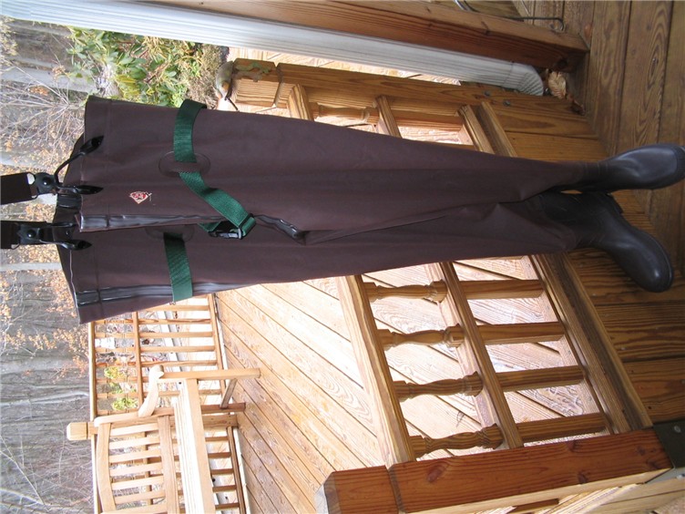 I have a pair of lug sole bootfoot waders for sale. They are Red Ball Waders size 10 boot. Lightly used in excellent condition. Comes with surf belt. They are coated nylon I believe. They're not neoprene and not the same as breathables. Somewhere in between. No leaks at all.