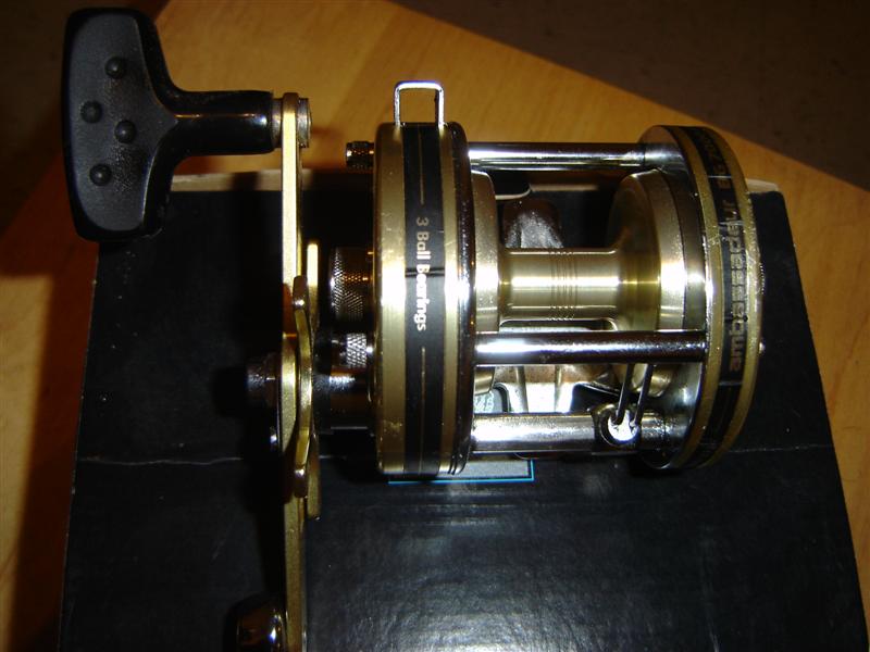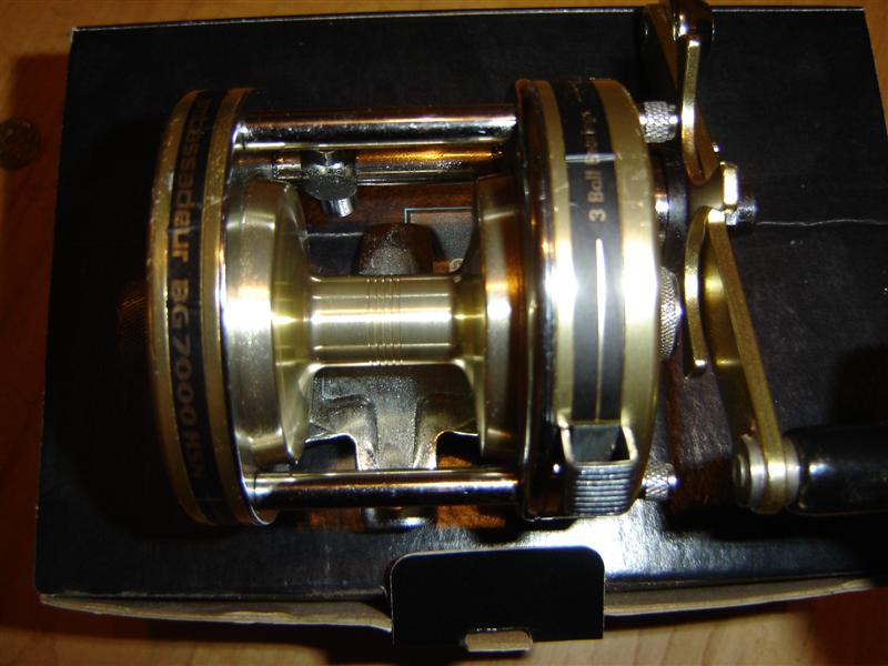 Abu 7000 HSN, gold color. Has the updated pinion gear and smoothie drag washers. I only used it a few times, has one small scratch/nick in right side plate under the handle, hardly noticeable. I just don't need the reel.Have box and paperwork included.
