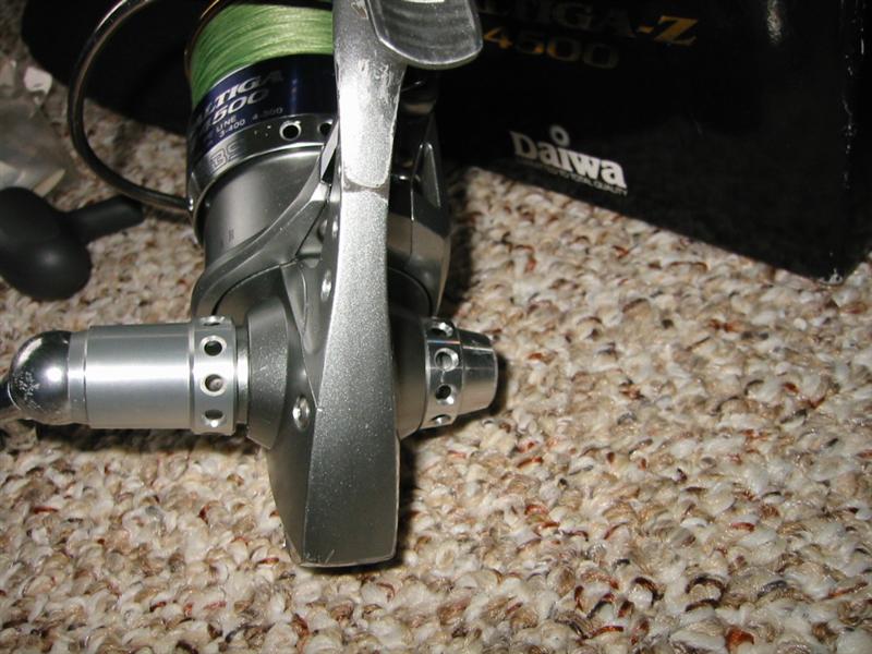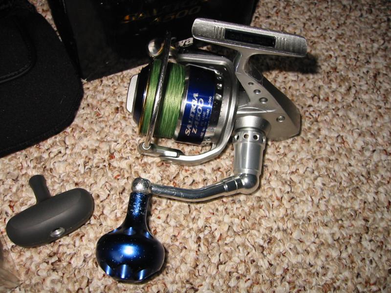 I am finally going to part with this reel. It has served me well over 2+ seasons. The reel recently came back from being serviced by Daiwa. A little history. The first season, the reel was sent back to CA and the foot was replaced as it broke one evening. Daiwa also replaced all the bearrings and did a complete service on the reel including cleaning and lube on all internals. The reel went back out to CA again this past winter for service. This time the reel was cleaned and lubed, the drag was adjusted (not sure what this is but it is noted on the service invoice), the rotation was adjusted (same as earlier), and the bail was adjusted. I have the service invoice from its original trip to CA and will include it if I can find it. The reel comes with original box, neoprene bag, manual (in Japanese), original handle knob, and a blue aluminum round knob. The original knob is unused as I bought the round knob right after I bought the reel and changed it out.