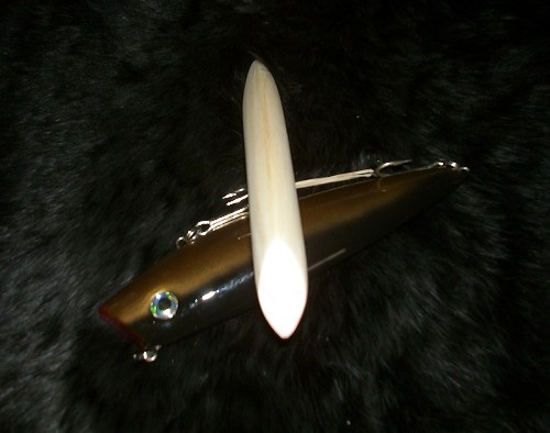 ProfessorM. thank you, maby he'll see this an ANSWER. I couldent take it any longer. so I went down an cut a piece 7" long TRACED the plug then CUT the shape, GRABBED a COLD ONE went out on the back deck an FREE HANDED the sanding to form the FINNISHED SHAPE. now I need to DRILL some EYE SOCKETS, an find out WHERE to PUT the weight. then it's sealing,sanding,priming, painting, topcoat.