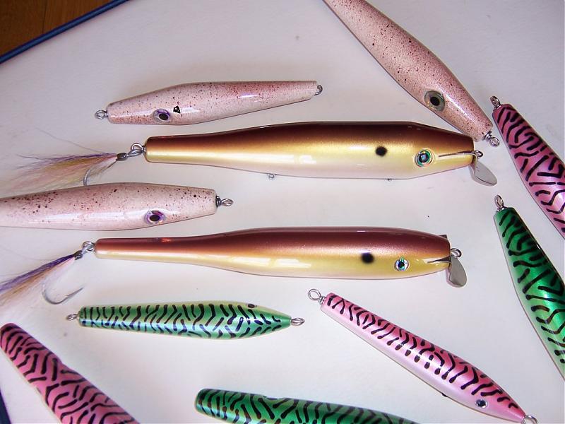Few more. Some of my favorite pencils in squid and mack, some Bernzy style spooks and a couple larger Gibbs trolling plugs in my herring colors, which I still don't have down the way I want yet. Still need to dress up the tails on the squid hawgs, any suggestions. Someone told me they would do a few for me but I have forgotten who