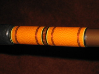 I bought this from a guy from Long Beach California. The length is 8'4" and it is one piece, no reel seat but I will include a Fuji plate seat. It is marked in handwritten script "Custom Built by Bob's Tackle" and "Browning Silaflex 12-25" I did find a tackle shop of that name in the Long Beach area listed on-line. It has 10 guides including the tip. Cork tape butt wrap. I'd guess it is from the 70s. The wraps are black under with orange and metallic red over... very well done. I showed this to Ron at Breachway B&T here in SoCo and he said back in the day using these guides on a blank with big backbone and a relatively soft tip was done for live bait and eels. Anyway... that's my story... nice vintage rod. Local pickup in RI. $115. http://www.striped-bass.com/Stripert...1&d=1161602338