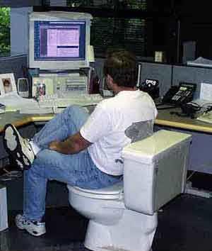 Ok ... This is not the first time this has happened . I go in the mens room today and I have to use the stall . There's probably about six stalls in there. All of a sudden somebody eles comes in and goes in one of the other stalls . Moments later a (thunderous fart) " Hi Honey " ,,, "What are you doing ?" (plop plop), "I love you too" (fizzleblap) ,,,odor is warfing now ,,getting very thick ,, "We going out to dinner tonight ?" (fart,plop)... This goes on and on .. Alot of people are taking advantage of down time and making calls in the pooper.. This guy probably calls his sweety same time every day .. (if she only knew)I've also heard people getting driving directions in the toilet .. amazing ,,,, please remember to wash your hands ..