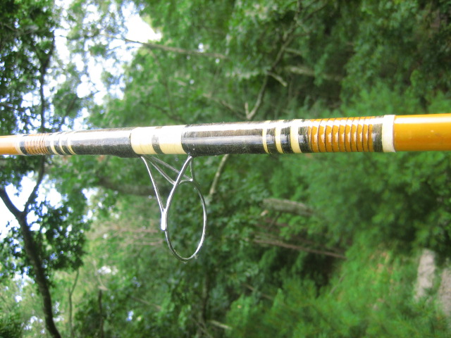 In real nice condition... both rod and reel. The rod is 11' 4"... honey Lamiglas. Wrapped at/by Murat.