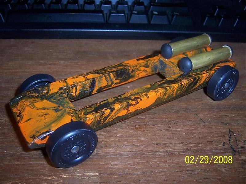 Sweet cars. I love this time of year. All wheels can and should be trued and debured, just not reshaped.  LEAVE THE BUMPS ON THE EDGE that is the first thing they look for and the first thing everybody wants to remove. Axle, wheels and weight placement are where the speed is. design and paint is the fun part. My latest outlaw car beat all ages by 2 car lengths