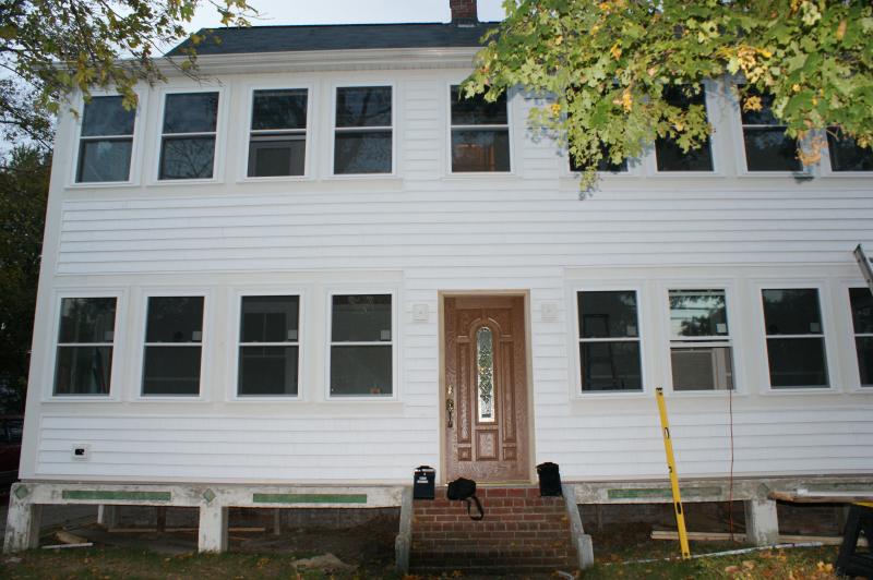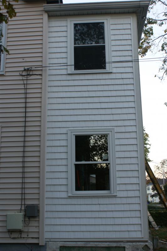 If you are wondering the siding is a Cedar Impressions style. I chose white because the old stuff was a majority white aluminum capped trim, and I could not get a close enough match to the old color from the rest of the house, which is a peach color. A siding guy told me he has done plenty of jobs this way. Was thinking of siding the whole house, till I figured the cost of the material.