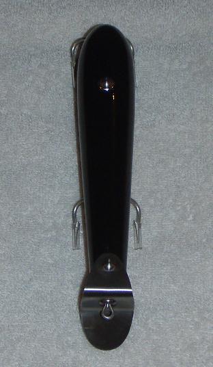 Ok my friend here you go. I wanted to use cotter pins like the original so to create the illusion I used cut cotter pins. I then pinned them into a bore which I tapped thus the bottom of the hanger. I then tapped the top part and rounded the head creating the illusion of the welded, solder, top part. The front grommet was done the same way with a hole drilled thru it to take the front hanger. It was a lot of fun to make and even more fun to give to Eddy. I have to thank VB, as it was his collection that inspired me to make the plug. I fell in luv with it as soon as I saw it. I thought insect at first and then black widow, thus the red hourglass. Thanks again for the accolades I am truly flattered.