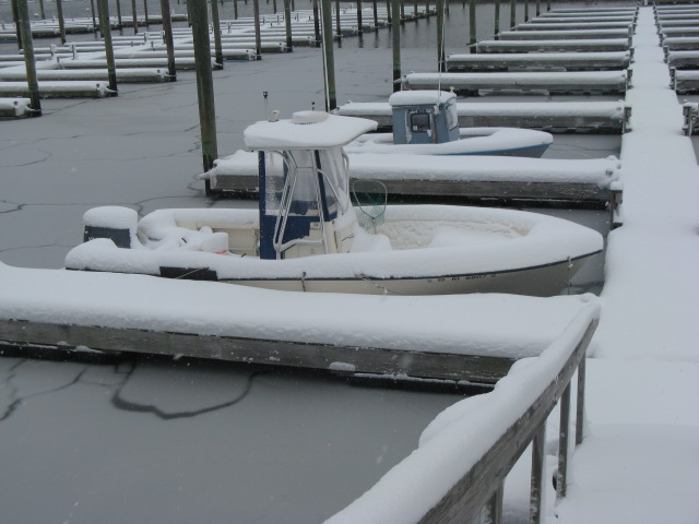 Oh..the Irony, of a Hawaii license plate, covered in snow, tucked amongst those buoys...