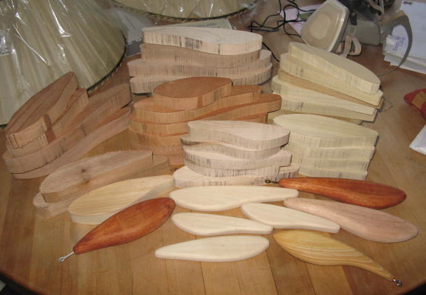 One of the guys who fabricates a lot of the millwork I design was kind enough to knock these shapes out for me. There's a little poplar, spanish cedar, maple, mahogany and a couple pieces of old growth cyprus. I'm snorting sawdust now....