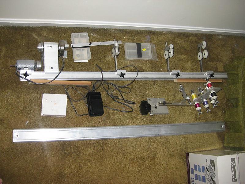 I'm interested and will take it pending a couple of questions. Does it have a chuck on one end driven by a pulley system that fastens to the rod butt, or is it direct drive with the motor mounted inline with the bed? How long are the sections? Does it have a foot control? Are you willing to ship (pak-mail will box it and send it) if I cover the shipping costs and throw in an extra 30 bucks for your trouble?