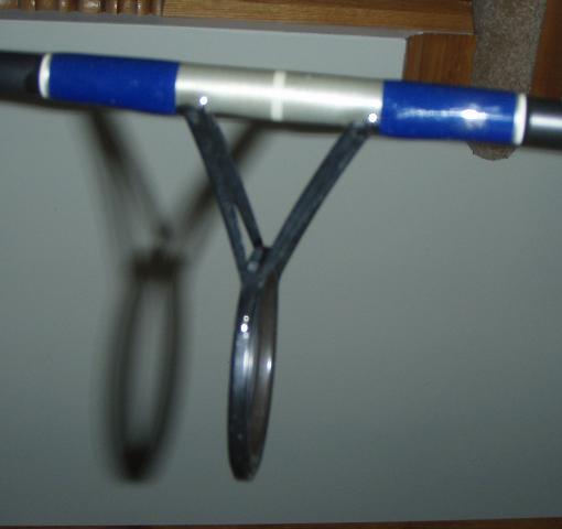 I understand "Cone of flight" being critical with mono.. I was hoping braid, not having any memory wouldn't be as critical .. This rod is well built and seems hardly fished .. not a scratch . Its useless to me set up for mono ..I only know 2 people in the whole world still plugging mono . Anyone want to trade an Allstar 1208 blank for this .. Pics are compared spacing to a lami triflex (a 10 footer braid friendly ) .. pics compare 1st,,2nd guide,,pic of wrap ..