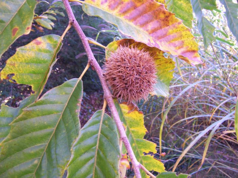 I planted this tree about 10 years ago and this is the first time it ever put out fruit, nuts. It is a special disease resistant American Chestnut variety . Hard to believe that once it was the most abundant food and timber tree in the east. Quoting "within a 40 year span from 1904 over 30 million acres of them were killed making it the largest ecological disaster in American history" that is like 3 billion trees and there are no more than 100 original American Chestnuts alive today as a few had resistance to the blight. They said that in their haste back then that panic logging probably destroyed many healthy resistant ones but they wanted to get the valuable lumber out of them before they died so many were killed that probably could have weathered the blight. Even to this day they are finding solitary trees out in the wild still alive. They have cross bred a couple of those remaining trees around 1962 with a Chinese variety to make it disease resistant and the hybrid I have. Pretty cool stuff.
