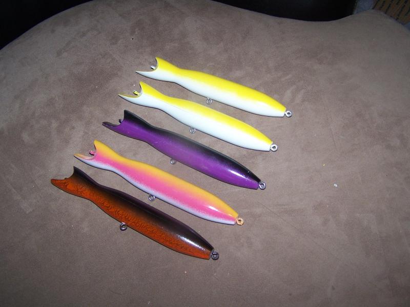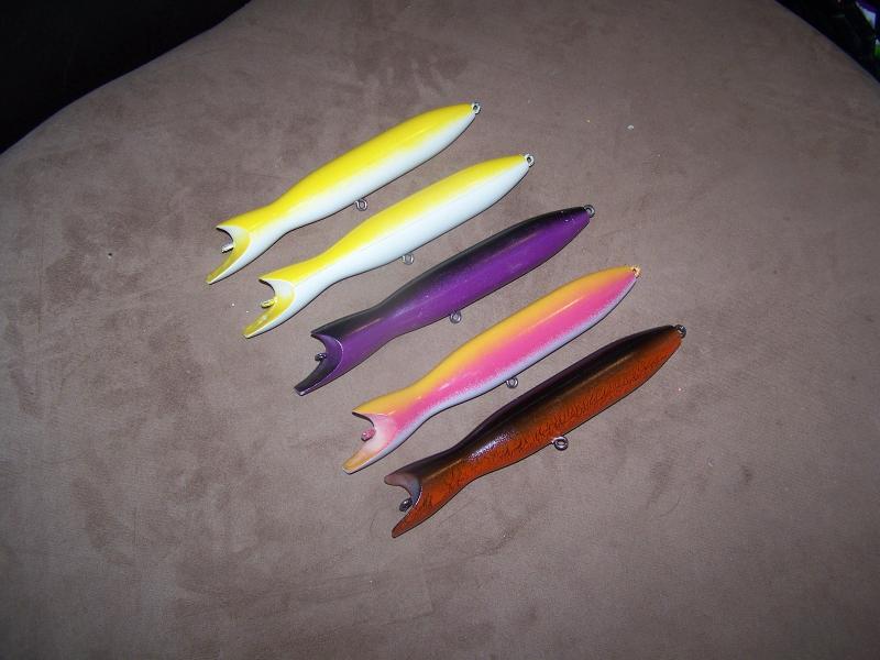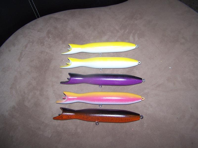 Here a few pics of my bottle swimmers. They are 8.5" long and weigh 3.5oz when fully rigged. With a steady retreive they swim down about 6 feet and with a sweeping and pause retreive they get down about 8 feet.