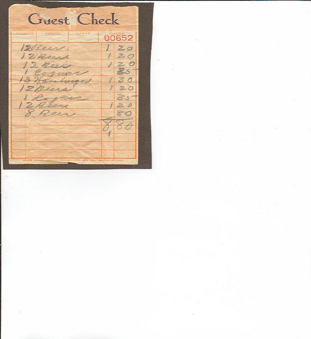 Found this guest check in my Mother-in-laws papers.