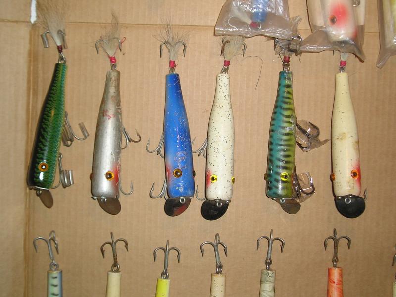 The big daddy is 8" and 1.25 in diameter. Weight is approx 3 oz. The husky dude 6" is the same diam and 2 1/4 oz. The mini is 1" and about 1 oz. The pic below of the lip is of a 8" big daddy. The 2 small swimmers are another swimming style of some real old ones I thought I would throw in. The other pic is some husky dudes.