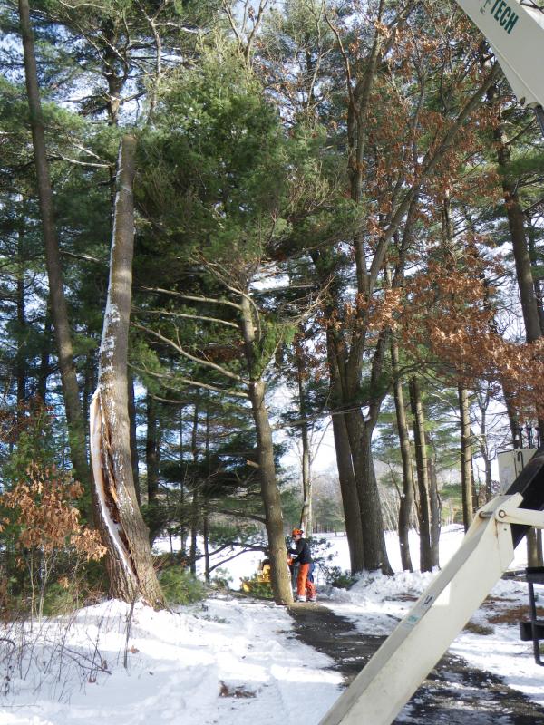 Nice pics. I have some tree work to be done this winter.... Wondering what that ran you for $$$. PM me if you want. I need a little more frost in the ground before I get the crews in with their trucks. Definitely not lightning, as the core was rotted from the base up. Pines are notorious for being weak trees.