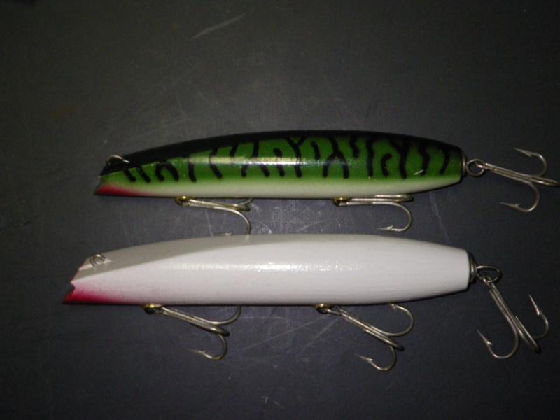 The white one was sent to me by the most active and knowledgeable collector/seller on SOL as a Pichney in trade for an old school BM small darter new in bag. It is the crudest built plug I have ever seen (the photo hides the ridges in the body), and the tail wrap is opposite every other Pichney have so I think I got jobbed and got a Lupo (maybe built on a pichney body) instead. I was too naive to question it at the time. Whatever it is, it is painful to look at. (I did get two Pichney SS for two large BM SS in the same trade so not all was bad).