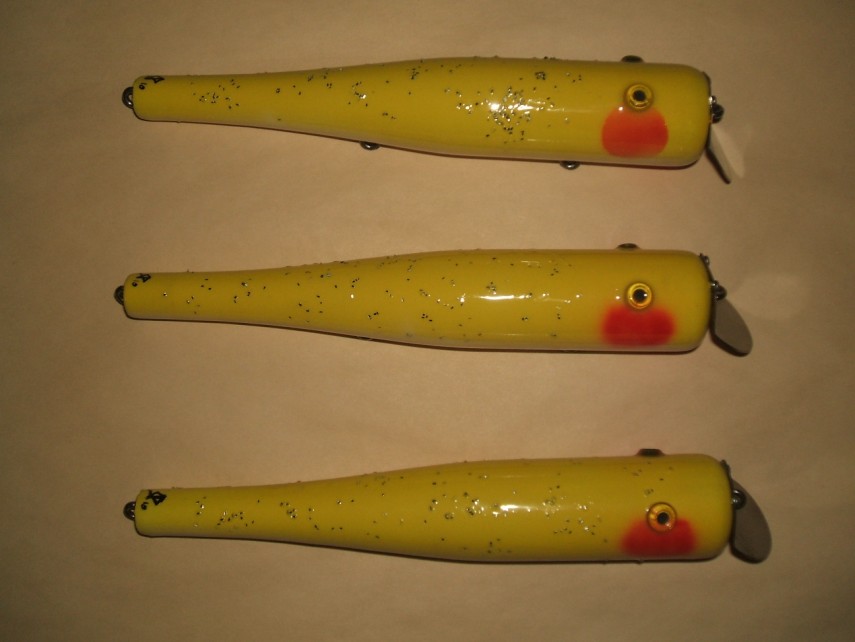 A bunch of Canal Pencils patterned after one I got from Eskimo at plugfest - Squids to match the hatch and a few in more classic colors.