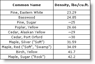 Thank you for all the feedback. - I found a wood density chart online -- that's very helpful.