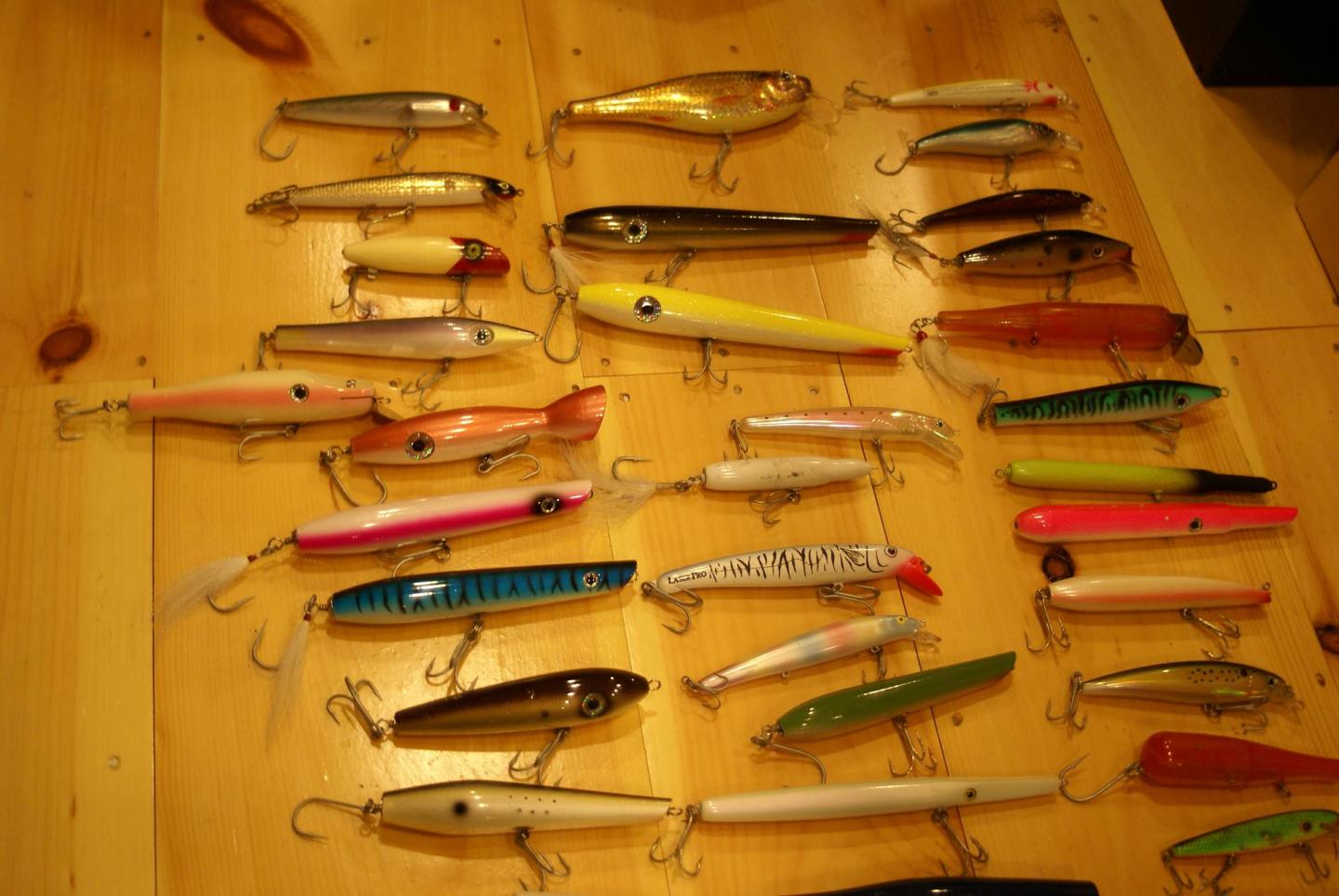 I HAVE A LARGE GROUP OF PLUGS FOR SALE. 57 IN TOTAL.SOME NEVER USED SOME BEATERS. THIS IS A GREAT DEAL. THERE IS EVERYTHING,NEEDLES, POPPERS ,PENCILS, DARTERS ,DANNYS, TOPWATER, AND SWIMMERS. THERE ARE SALTYS,GIBBS,AFTERHOURS,CAPE COD TACKLE,GAGS,ATOM,STETZKO,BOMBER,RAPALA,REBEL,SUPER STRIKE, HEDDON , AND MORE. 30 WOOD AND 27 PLASTIC. 250.00 DOLLARS FOR THE LOT WILL TRY TO POST PICS.