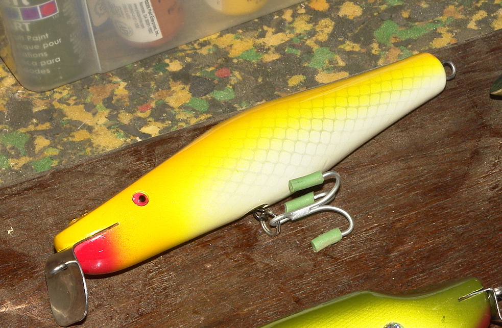 Here's one I did over the winter http://www.striped-bass.com/Stripert...tml#post731579 and finally painted a few weeks ago. Was going to do an orig. Creek Chub Yellow flash, but went with my version. Working on some 6.5" surfsters and Pikies now. Will post some photo's when finished.