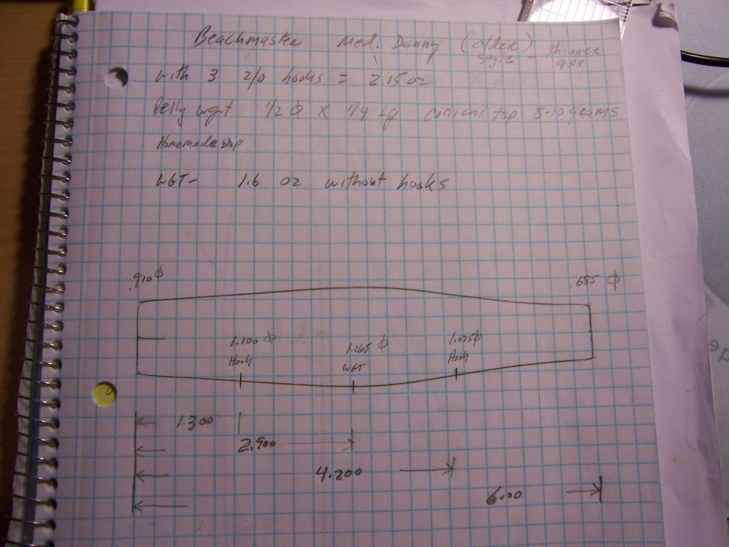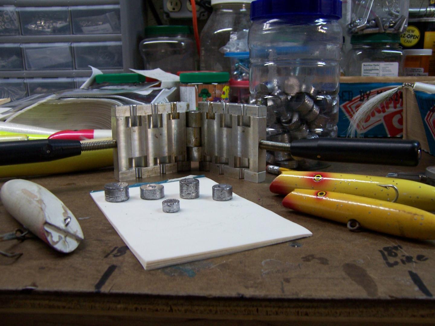 here are what the weights look like. The longer 3/4 " dia. one is 1.1 oz and the larger 5/8 dia. one is .9 oz and then they go down to the smallest one which is 1/2" dia. used for the med BM danny. So I have a bunch of choices. I have one done with the largest in there and it seems perfect but I am screwing around with lips now. As far as rod I was thinking a lariat or catapult.