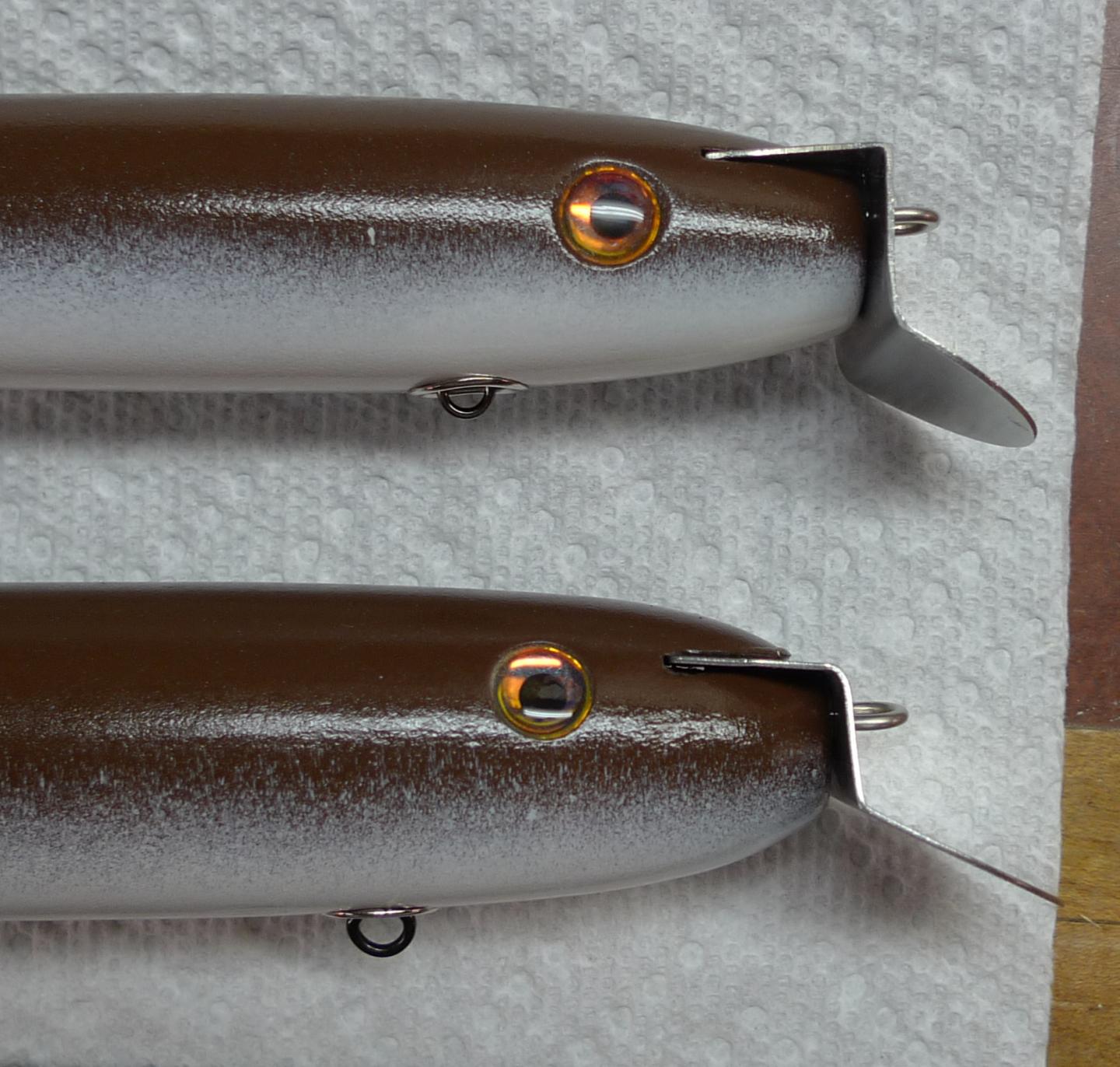 I saw that Paul made a few GTS 3 3/4 plugs and some supersized ones as well last winter. I made 2 of slightly different length and diameters and used A40 lips ... I had some flat ones that I bent in my metal vice.