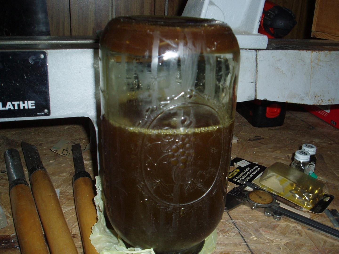 I know this has been covered before but I can't find the thread I was looking for.. Anyway I've had this batch of sealer about a year and it has recently turned to jelly on the bottom. I read somewhere it's because of air getting in to the jar. I'm pretty sure the thread also stated that it can be saved by straining out the mixture and adding more mineral spirits? Just wanted to ask here and make sure, seems to me like the jelly stuff is the spar urethane setting up because air got to it? I think the mineral spirits I used might have something to do with it, I used some stuff in a white jug my friend had given me which is probably v.o.c. compliant junk.. I attached a picture,there is about 3/4" of jelly at the bottom. Any suggestions?